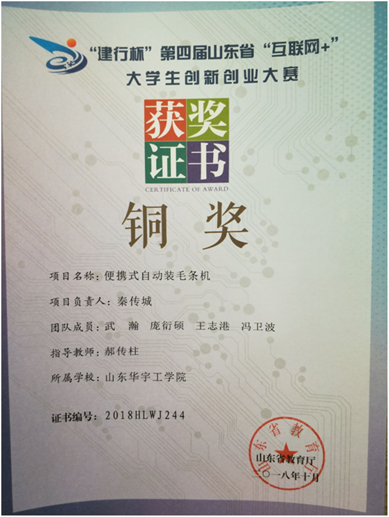 近日,山东省教育厅、山东省财政厅公布了“建行杯”第四届山东省“互联网+”大学生创新创业大赛获奖结果,十大信誉便携式自动装毛条机项目获铜奖,这是十大信誉参加山东省“互联网+”大学生创新创业大赛并斩获大奖,实现了学校在该项赛事中的突破。