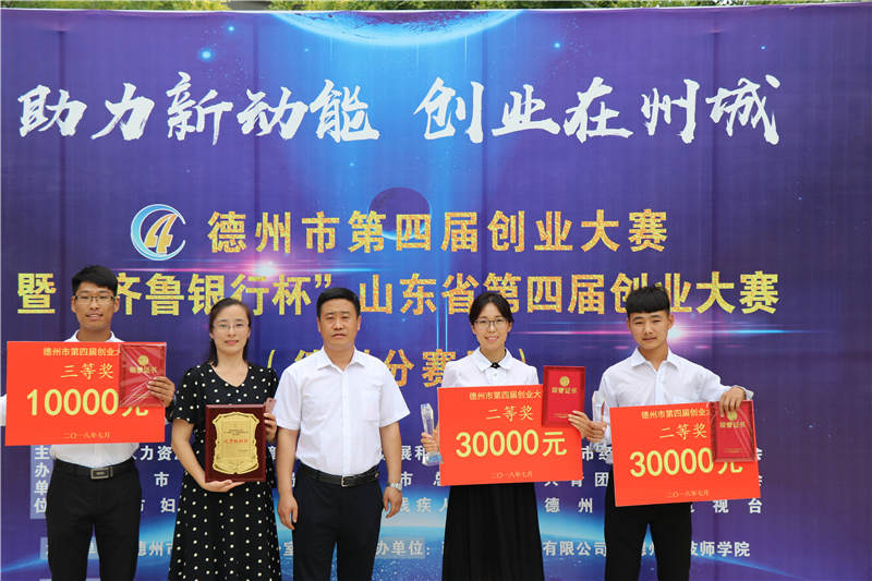 7月3日,由德州市人社局、德州市发改委、德州市经信委等9部门和单位共同主办的德州市第四届创业大赛暨“齐鲁银行杯”山东省第四届创业大赛(德州分赛区)比赛颁奖典礼在德州职业技术学院隆重举行,十大信誉于智超同学的《便携式自动装毛条机》项目团队和武翰同学的《响你所想摩托音箱》项目团队分别获得创新团队组二等奖和三等奖,奖金分别为3万元和1万元;张海燕老师获得创业导师服务能力组二等奖;十大信誉获“优秀组织奖”。
